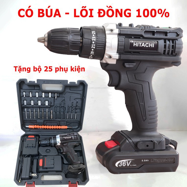 Máy Khoan Pin Hitachi 36V – 3 chức năng – Tặng Bộ Phụ Kiện 24 Chi Tiết – Máy Khoan Bắn Vít Cầm Tay free ship